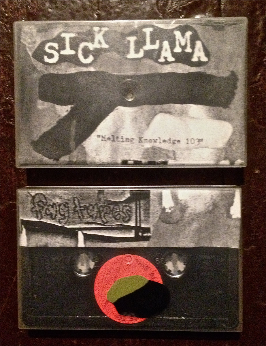 FT472 SICK LLAMA "Melting Knowledge 103" cassette. Rare, hand numbered, hand painted cassette edition of 6. Hit th' drawing board without chalk or a big green board.