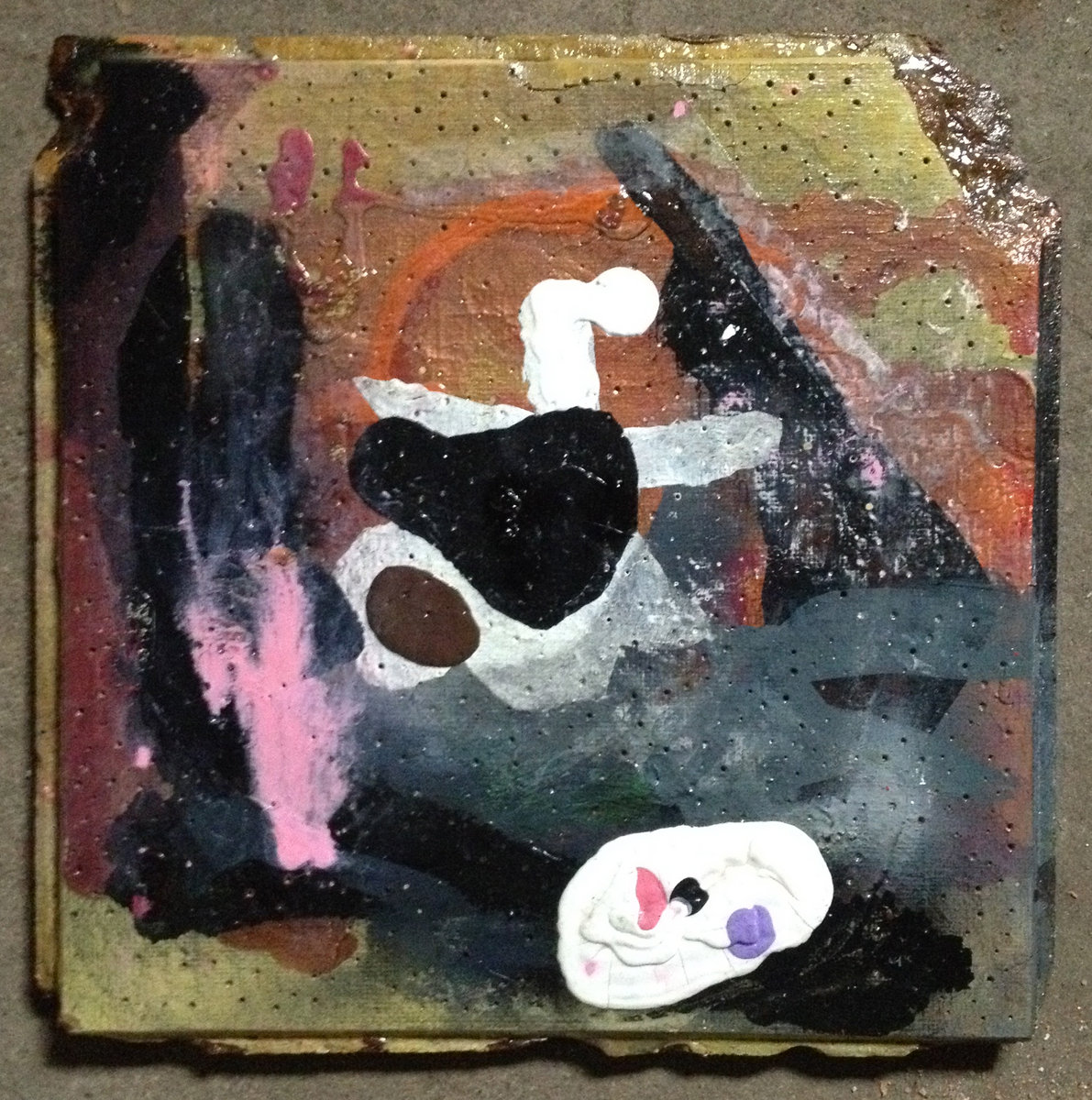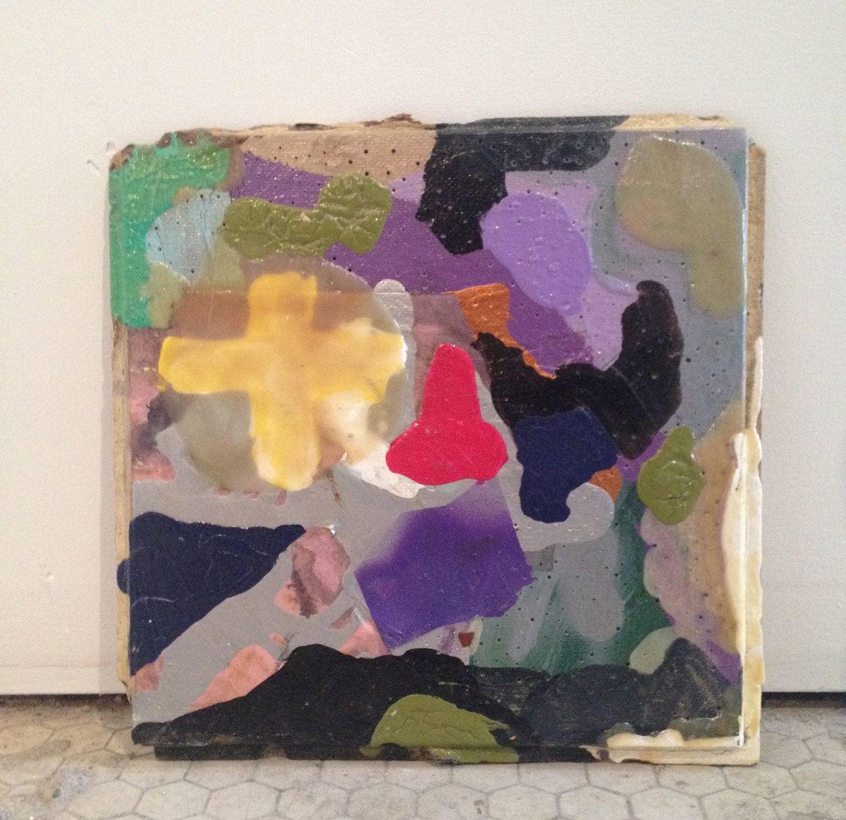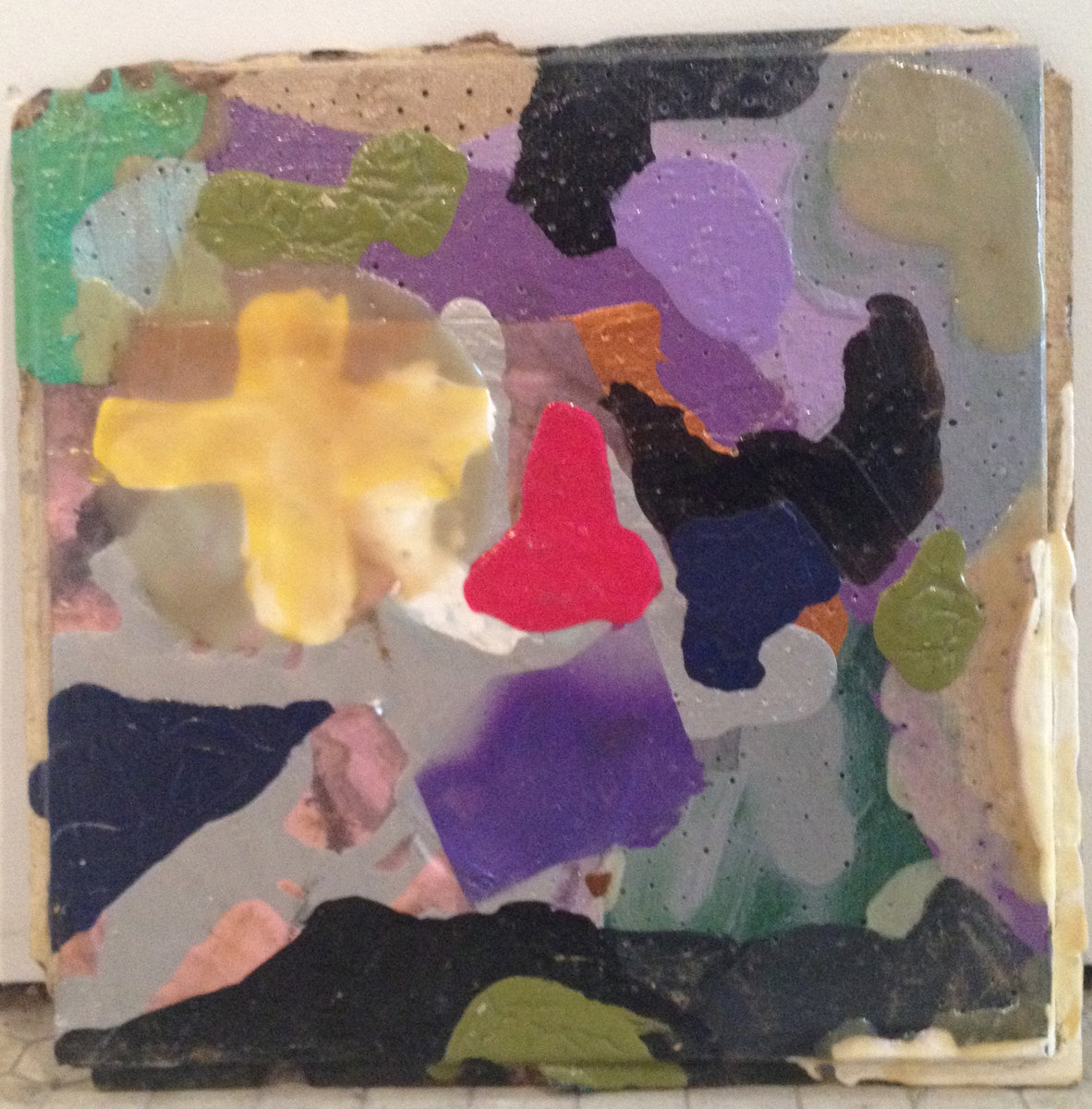 FT460 TILE CASSETTE "Melting Knowledge 1.1" painting + cassette. First in this series by Heath Moerland / Sick Llama. 12.75" x 12.75 painting on wood tile with cassette attached to the back. An abstract soundtrack accompanying the painting as knowledge melts away to and from oblivion. Signed and dated. Edition 1/1.